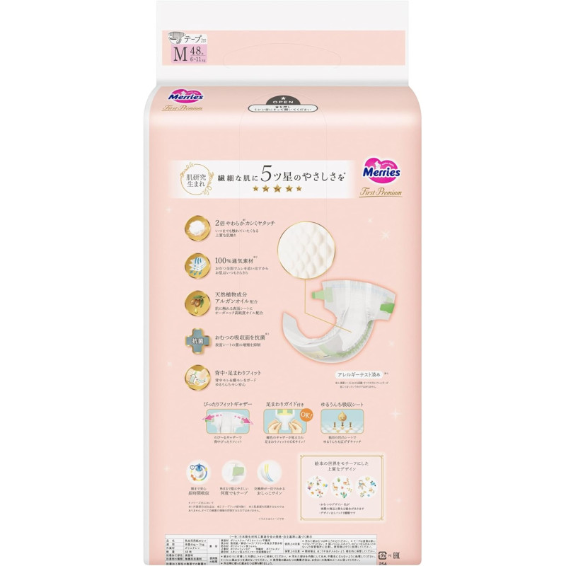 Merries produkcija ne tikai nodrošina izcilu komforta sajūtu, kamēr mazulis kustās un izpēta apkārtejo vidi, bet tā ir arī piemērota bērniem ar alerģiju pret parastajām autiņbiksītēm.