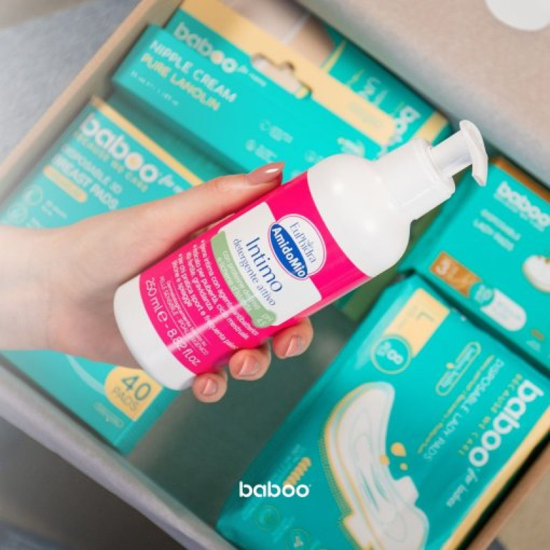 BABOO pēcdzemdību ieliktnīši paredzēti pirmajām dienām pēc dzemdībām. Tie ir aprīkoti ar platiem sānu „spārniņiem”, ātri uzsūcošiem slāņiem un mīkstu, elpojošu virsmu, kas palīdz saglabāt sausumu, komfortu un aizsardzību pret noplūdēm un nepatīkamām smakām.