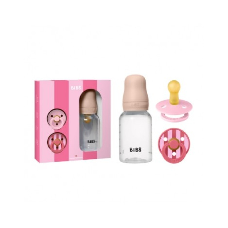 Šis dāvanu komplekts ietver barošanas pudelīti un divus klasiskos BIBS knupīšus. Tā ir lieliska ideja dāvanai.