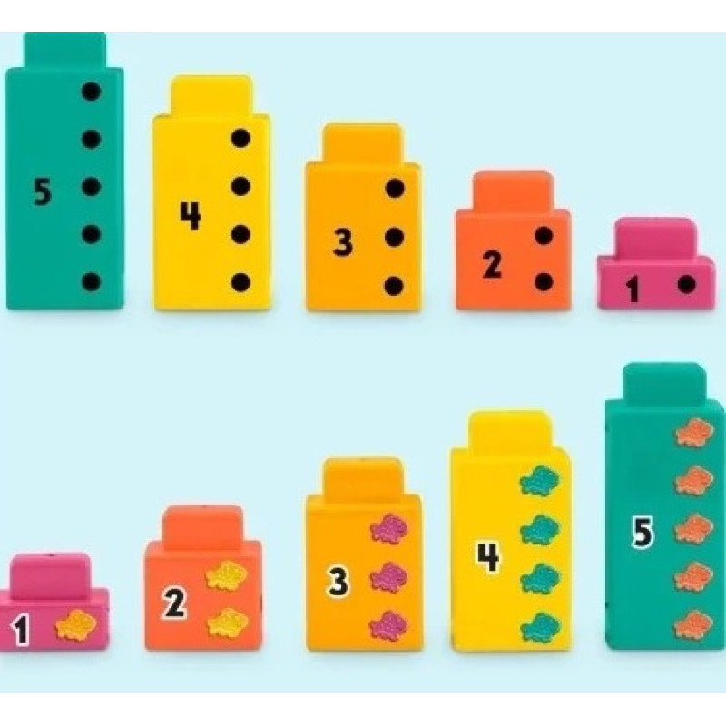 Bērni var apgūt saskaitīšanu un atņemšanu, saliekot numurētos klucīšus. Bērni var mēģināt veidot dažādas skaitļu kombinācijas vai noņemt klucīšus, lai redzētu, kā darbojas atņemšana.