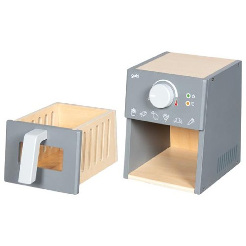Šis koka aerogrils ir radīts tā, lai bērni varētu droši un aizrautīgi izpaust savas pirmās kulinārās fantāzijas, bez elektrības un bez riskiem. Dizains ir bērniem drošs, izturīgs un piemērots aktīvai spēlei, attīstot motoriku, iztēli un lomu spēļu prasmes. Komplektā iekļautie koka aksesuāri piedāvā daudz iespēju mazajiem pavāriem eksperimentēt un “gatavot” dažādus ēdienus.