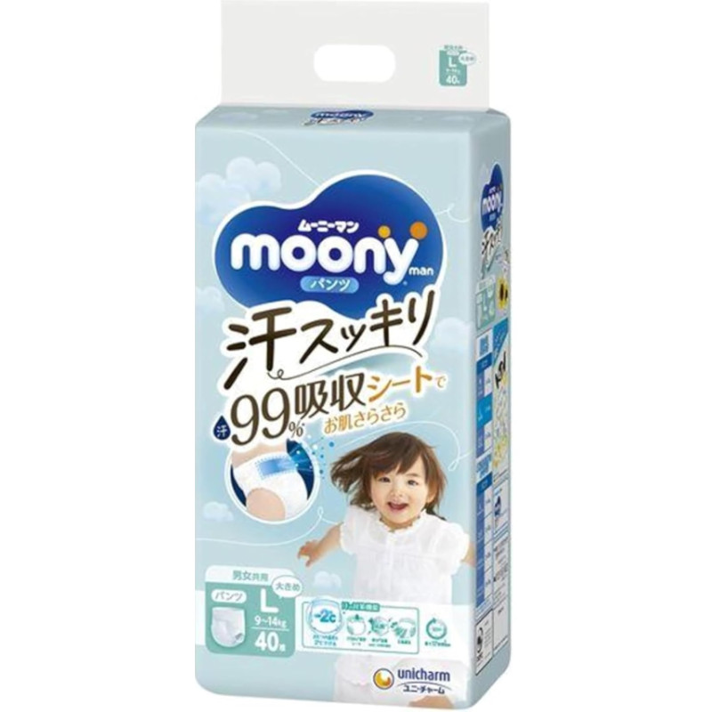 Moony autiņbiksītes–biksītes Anti-sweat PL 9–14kg 40gab