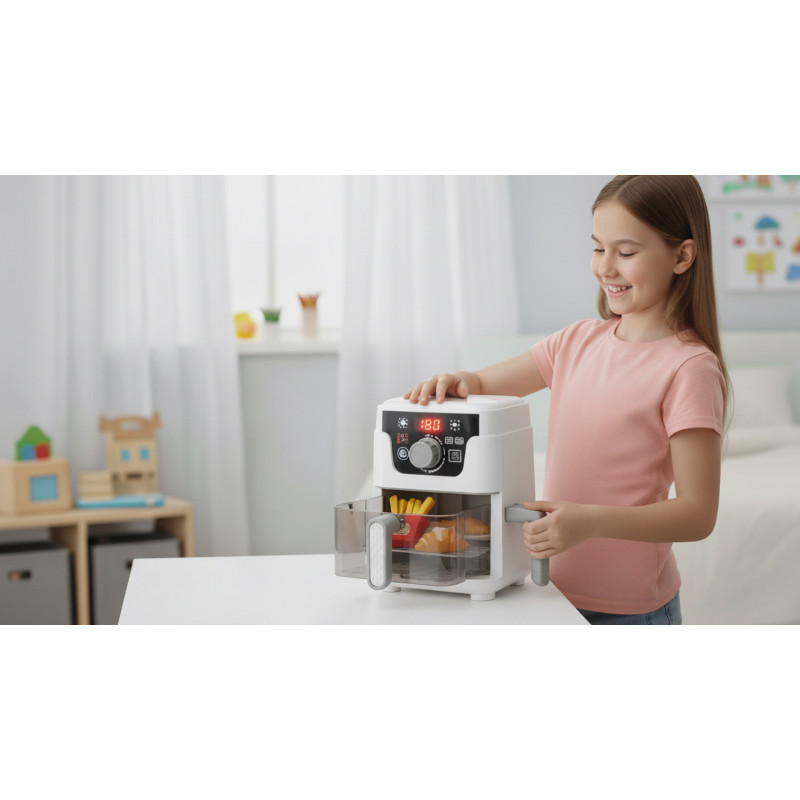 Šis aizraujošais komplekts imitē īsta aerogrila darbību, aprīkots ar skaņas un gaismas efektiem, elektronisku displeju un taimeri maksimālam reālisma efektam.