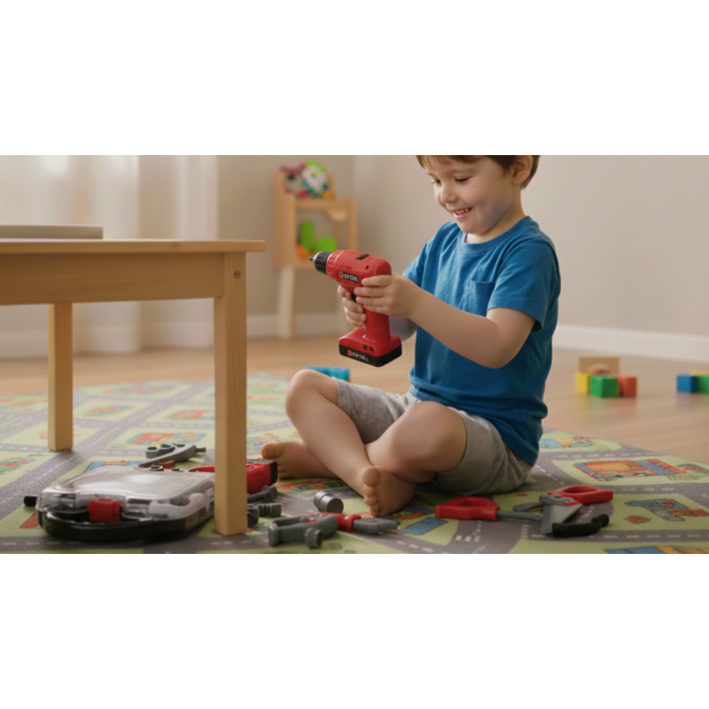 Plašais instrumentu klāsts (37 priekšmeti) palīdzēs bērnam apgūt jaunus nosaukumus un paplašināt vārdu krājumu. Visi elementi izgatavoti no drošas plastmasas.