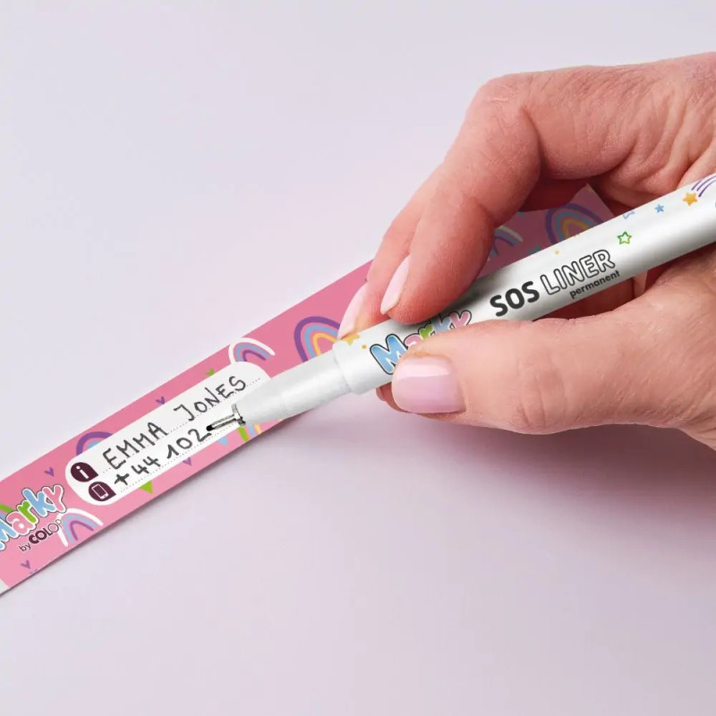 Marky SOS aproču komplekts ir drošs un ērts risinājums jūsu bērna drošībai. Vienkārši uzrakstiet kontaktinformāciju uz aproces, izmantojot komplektā iekļauto marķieri, un varat justies mierīgi jebkurā situācijā — pastaigā, ceļojumā, nometnē vai izklaides parkā.