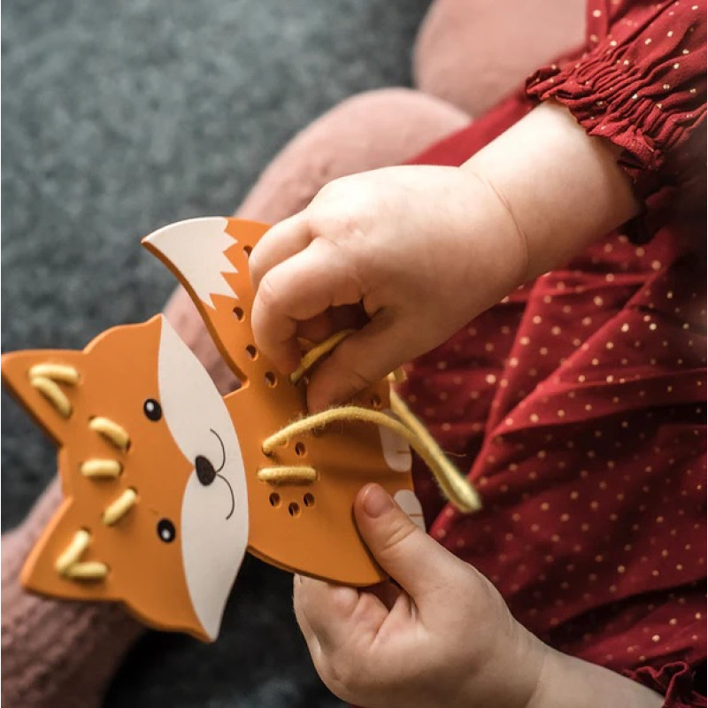 Attīstiet mazuļu radošās spējas ar šo lielisko izšūšanas komplektu lapsiņas formā. Komplektā ietilpst koka kartīte ar lapsas attēlu un aukliņa, kas ir ideāli piemērota vienkāršu izšūšanas dūrienu apgūšanai un smalkās motorikas attīstīšanai.