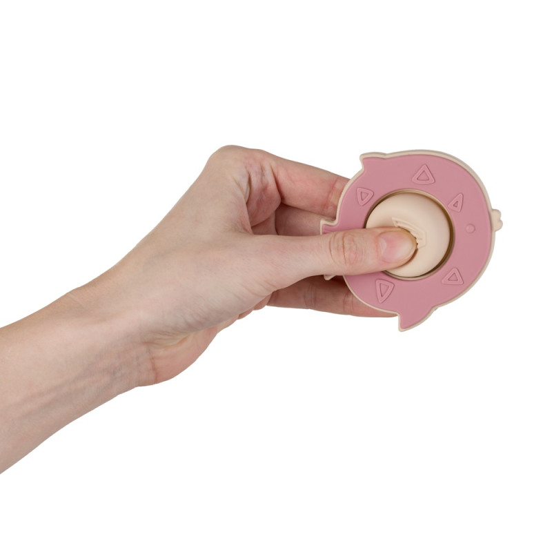 Izgatavota no augstas kvalitātes pārtikas silikona (bez BPA), droša pat pašiem mazākajiem. Rotaļlieta nomierina smaganas zobu nākšanas laikā, attīsta košļāšanas prasmes un stimulē satveršanas kustības.