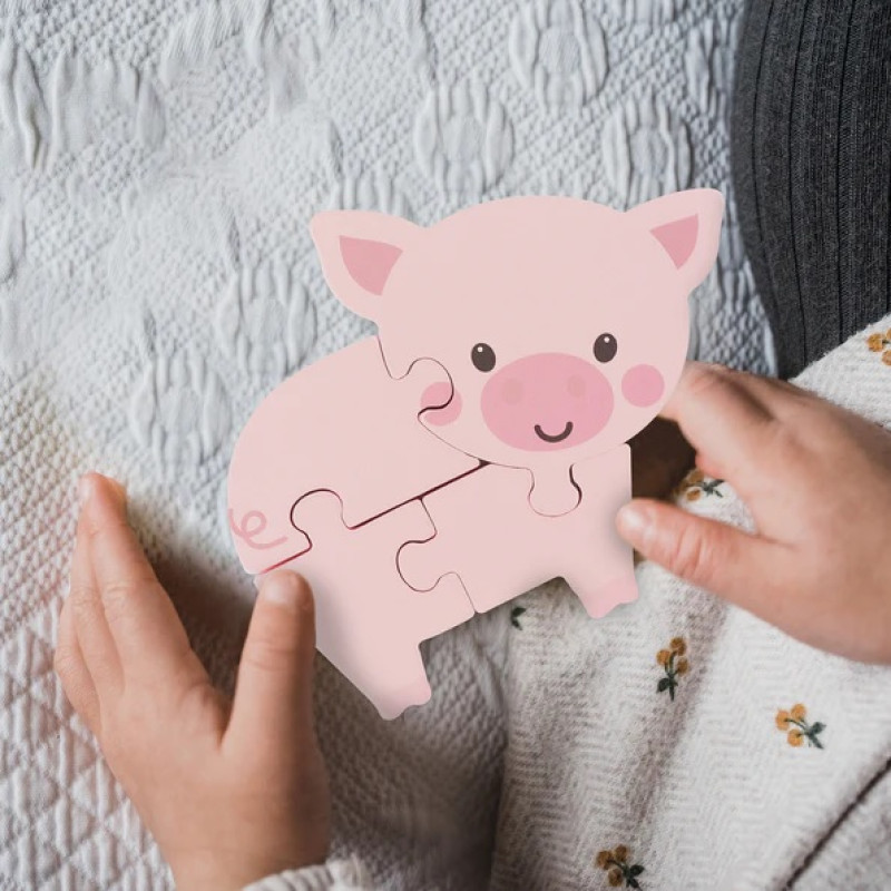 Šī lielizmēra koka puzle sivēna formā ir īpaši piemērota mazām bērnu rociņām un padara salikšanas procesu aizraujošu un viegli saprotamu.