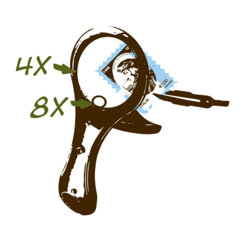 • palielinājums: 4x un 8x