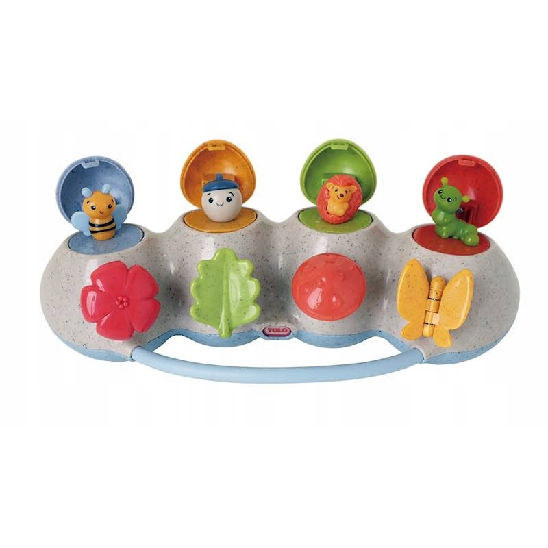 Rotaļlieta Tolo BIO Pop Up ir aizraujoša un viegli lietojama rotaļlieta, kas piedāvā vairākus veidus, kā varoņi “izlec” no savām ligzdiņām.