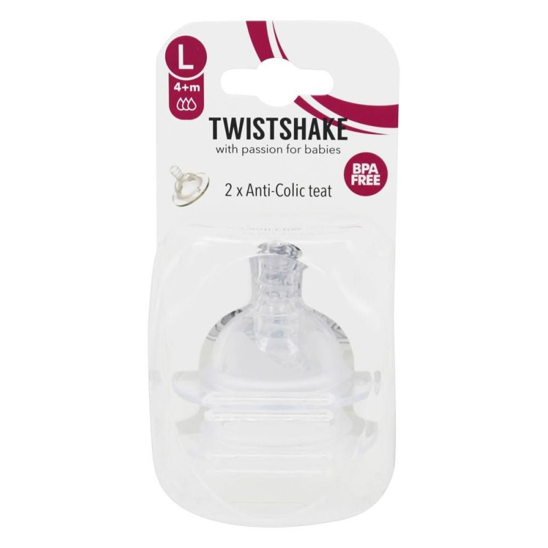 Twistshake knupīši ir izgatavoti no īpaši mīksta, augstas kvalitātes silikona. Speciālā konstrukcija novērš gaisa norīšanu barošanas laikā, tādējādi samazinot koliku un vēdera uzpūšanās risku.